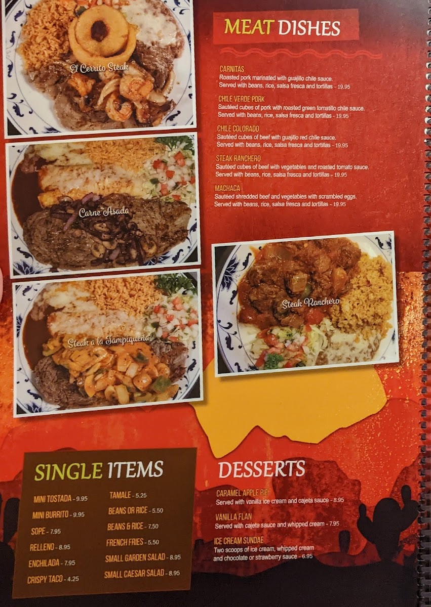 El Cerrito offers a menu that reflects the welcoming and relaxed atmosphere of a classic Mexican eatery, where familiar flavors and comforting dishes come together. The menu features a range of satisfying options, from hearty burritos and crispy tacos to flavorful specialties like house fajitas and shrimp tacos. Alongside these, refreshing drinks such as ice cold horchata provide a perfect complement, especially during a casual lunch or a laid-back dinner.